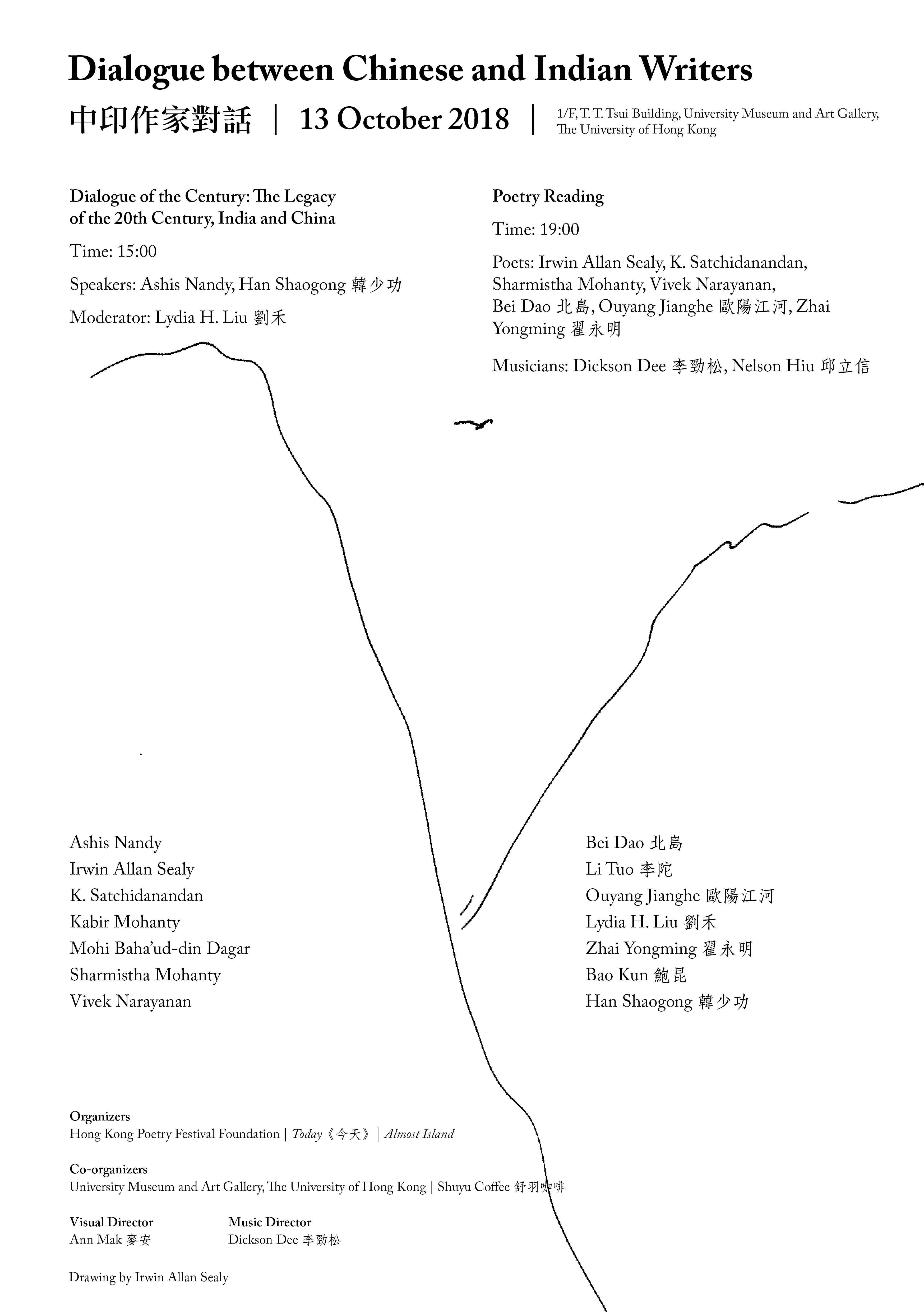 The Dialogue between Chinese and Indian Writers is organized by Hong Kong Poetry Festival Foundation and two prominent literary magazines—Today from China and Almost Island from India. The Dialogue will be held in Hong Kong on 13-14 October 2018 at the University Museum and Art Gallery, The University of Hong Kong.