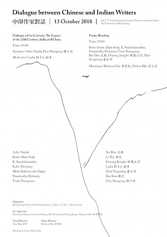 Dialogue between Chinese and Indian Writers October 13, 2018, 3:00 pm Nelson Hiu BeiDao Ashis Nandy K. Satchidanandan Kabir Mohanty Mohi Baha’ud-din Dagar Sharmistha Mohanty Vivek Narayanan Li Tuo 李陀 Ouyang Jianghe 歐陽江河 Lydia H. Liu 劉禾 Zhai Yongming 翟永明 Bao Kun 鮑昆 Han Shaogong 韓少功 Dickson Dee